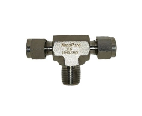 Adaptador SST 316L tipo T roscado ¼ NPT macho a tubing ¼ OD