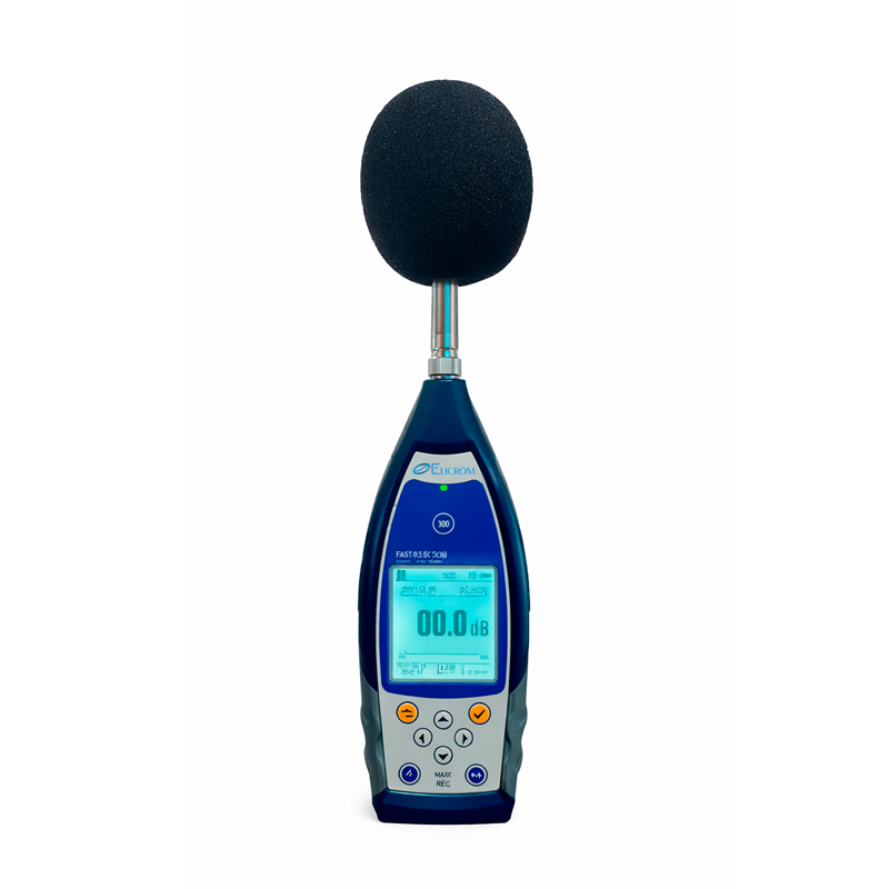 El equipo ELICROM 308 es un sonómetro clase 1, analizador de espectro en tiempo real con bandas de 1/1 y 1/3 de octava, portable, robusto y de fácil manejo. Mide todas las funciones simultáneamente con todas las ponderaciones necesarias para calcular los índices básicos de evaluación acústica según los requerimientos de la norma ISO 1996 PARTES 1 Y 2.