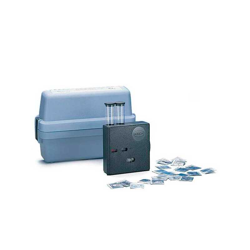 Incluye un reactivo, discos de color, tubo, caja de comparación de color, hoja de instrucciones y maletín de transporte.