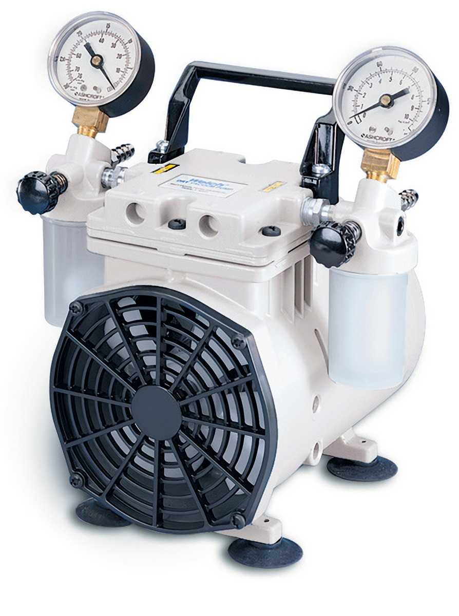 -Proporciona hasta 68,6 cm (27" ") Hg de vacío para aplicaciones en laboratorios, oficinas o plantas industriales: destilación al vacío, filtración y estudios de contaminación del aire que emplean filtros de membrana.