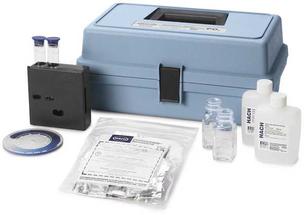 Incluye: un reactivo, disco de color, caja de comparación, dos tubos de visualización, adaptador de visualización, dos botellas, tubo cuentagotas, agua desionizada, instrucciones y estuche de transporte.